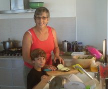 6/6/2012 Steve had a swim in the morning while Pam rested. She is recovering from sinus congestion. After home schooling we splashed in the Mediterranean and threw a Frisbee and kicked a soccer ball on the beach, a good day of rest. The Bella’s friend Jamie is visiting. She is a professional basketball player and gave lessons this afternoon to Lou.. All the kids are beginning soccer next door on the beautiful astro-turf field.